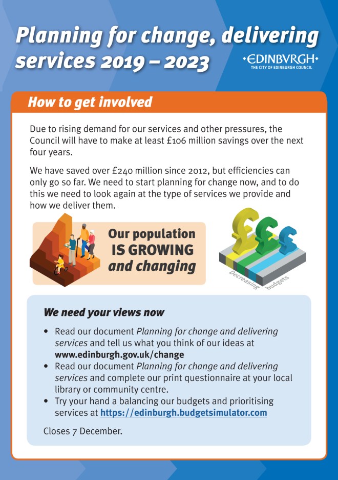 Please click the graphics to see Edinburgh Council’s flyer and booklet about this. Please tell Edinburgh Council what you think! There is a lot more information in the Council booklet.